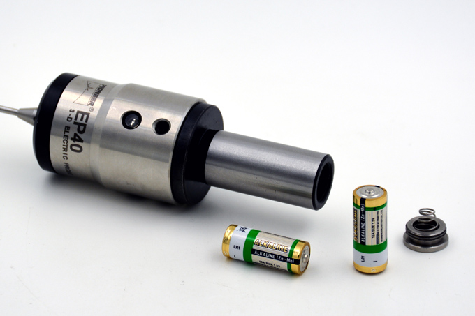 EP40 electric probe includes a electric probe unit and a 20mm diameter cylindrical shank. The electric probe senses the contact with the metal workpiece through its conductivity,when the stylus touches the surface, the LED indicator lights up. It used to check work pieces of all kinds of solid materials with electrical conductivity.